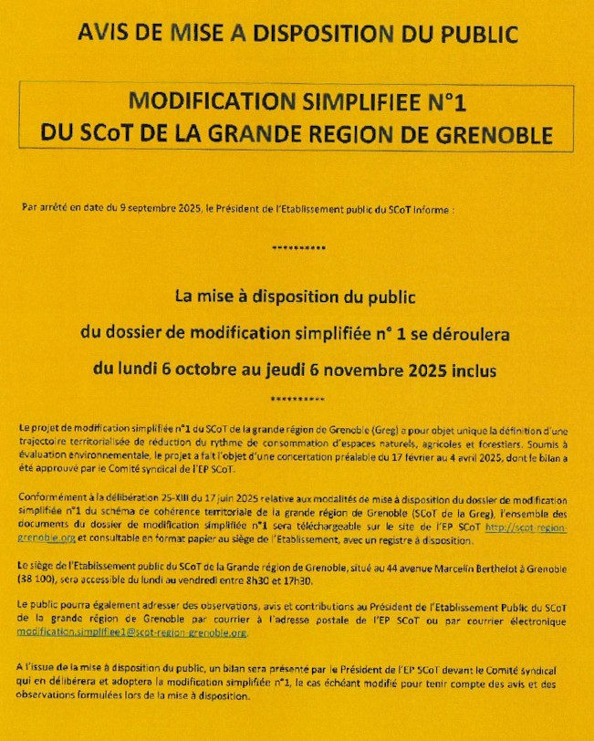 Le dossier papier et le registre seront à disposition du public pendant toute la durée de la phase de mise à disposition, c’est à dire : du 07 octobre au 06 novembre 2025. Concerne en priorité les habitations situées dans la partie basse du village.