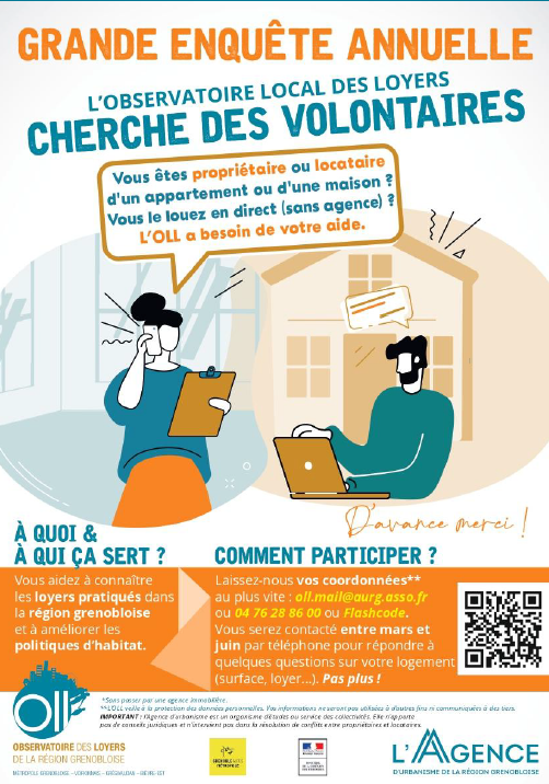 Chaque année, en mars, l’Observatoire local des loyers (OLL) lance sa collecte d’informations auprès des propriétaires bailleurs et des locataires louant en direct à un particulier dans 76 communes de la région grenobloise. L’objectif : avoir une vision juste des loyers pratiqués et favoriser l’efficacité des politiques publiques de l’habitat pour mieux répondre aux besoins en logements des habitants.