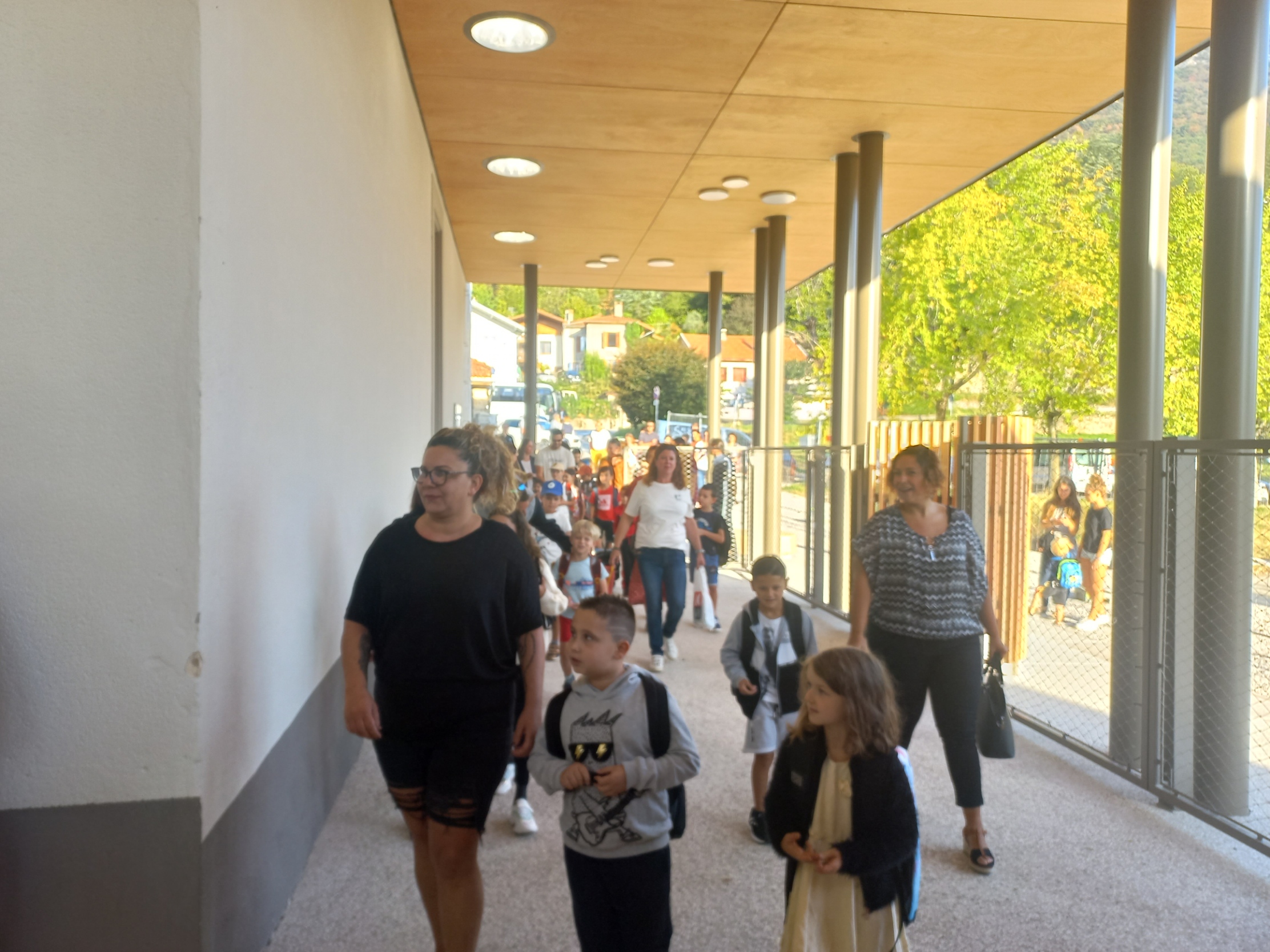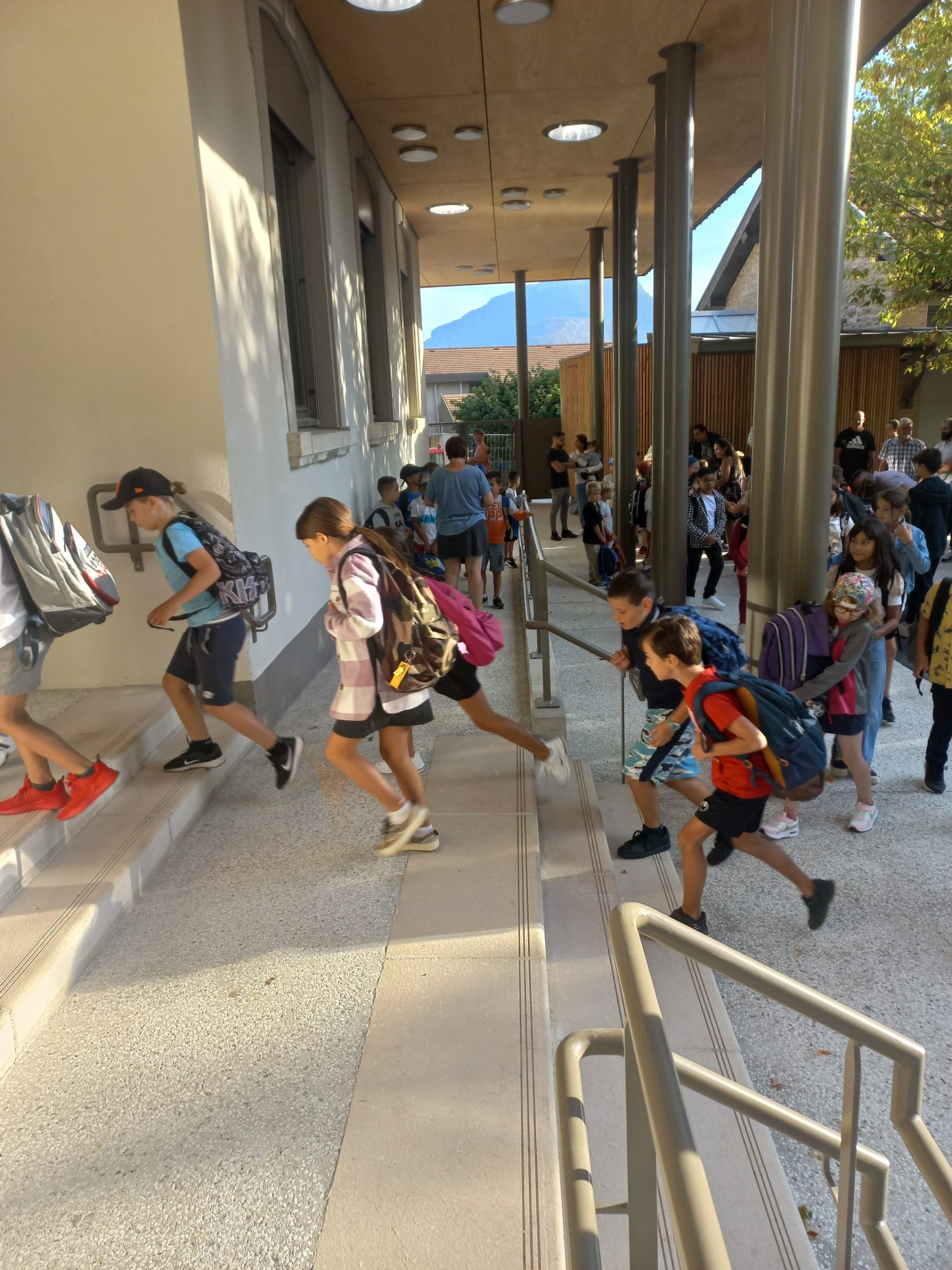 Rentrée des classes un peu particulière en ce 1er septembre. Car qui dit nouvelle rentrée, dit cette année nouvelle école. Parents et élèves ont visiblement apprécie au premier regard les changements opérés notamment les travaux effectués sur les extérieurs. Les Enfants durent attendre encore un peu pour découvrir leur nouvel univers qui les attends à l’intérieur.